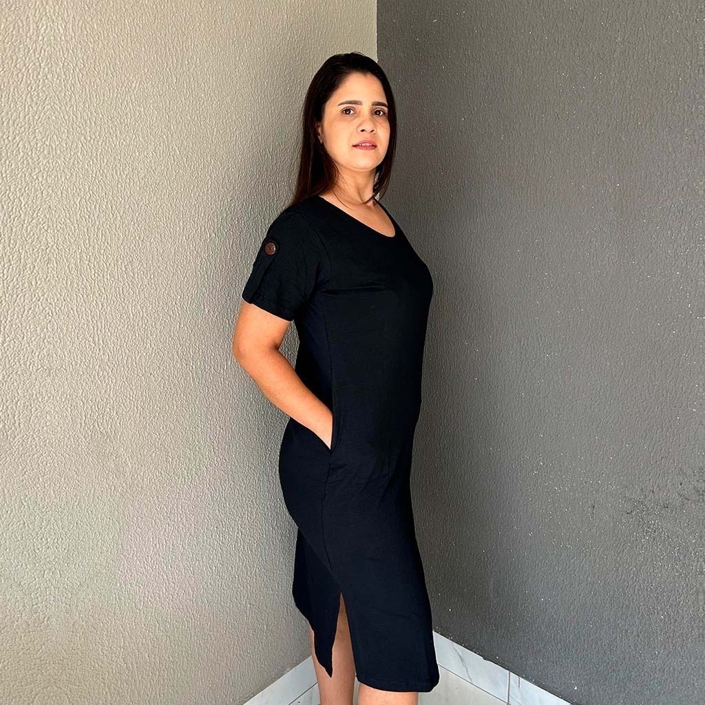 Vestido Bella com Bolso e Botão: Sofisticação e Conforto em Malha Premium Envolva-se na elegância do Vestido Bella, confeccionado em malha com 94% algodão e 6% elastano, que oferece caimento perfeito e toque macio. O detalhe dos botões e o bolso funcional adicionam charme e praticidade ao design. Ideal para ocasiões que pedem estilo refinado sem abrir mão do conforto. Realce sua presença com a combinação perfeita de beleza e delicadeza no Vestido Bella.